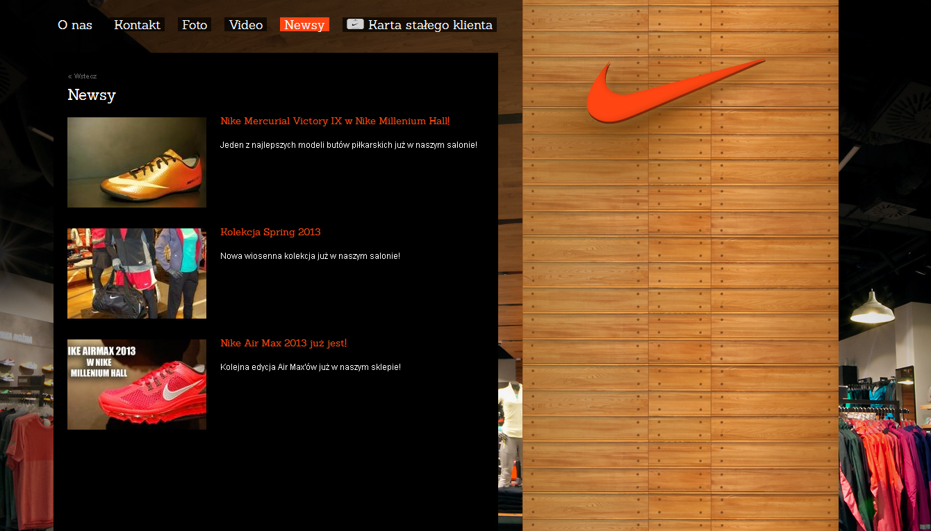 Strona ma charakter czysto informacyjny. Jej funkcją jest poinformowanie klientów o aktualnych promocjach oraz nowościach wśród linii produktów marki NIKE.